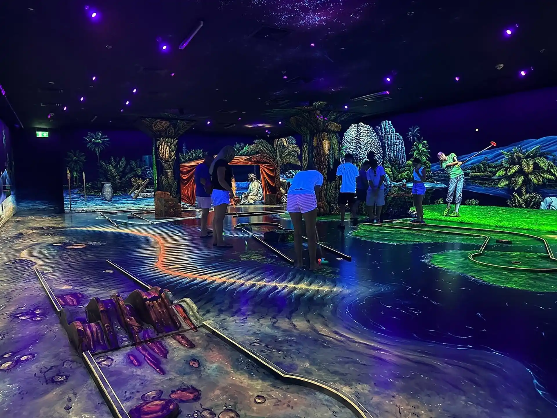 Step into a magical glow-in-the-dark world at 3D Blacklight Minigolf Dubai, where art and sport meet. Spread across three uniquely themed rooms, the course is adorned with dazzling hand-painted 3D artwork illuminated by black light. Equipped with 3D glasses, players experience an unparalleled visual spectacle while enjoying a fun-filled golfing experience. Whether you’re a novice or a seasoned golfer, this vibrant activity promises unforgettable moments and plenty of photo opportunities.